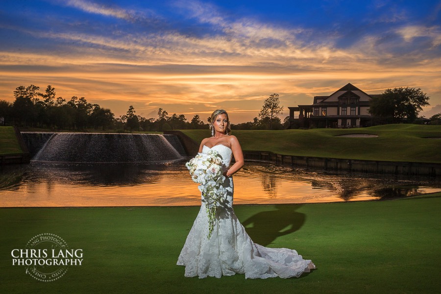 The waterfall on 18 is an amazing backdrop for wedding and bridal photography. Probably one of the most requested picture locations for Bride & Groom must have shots on a wedding day. The view of the waterfall and the clubhouse in the back is timeless and classic. Depending on the individuals style, I create different looks during different times of the day. For the most ideal to time of day to get brilliant skies and color you want to try and make it at sunset - twilight.